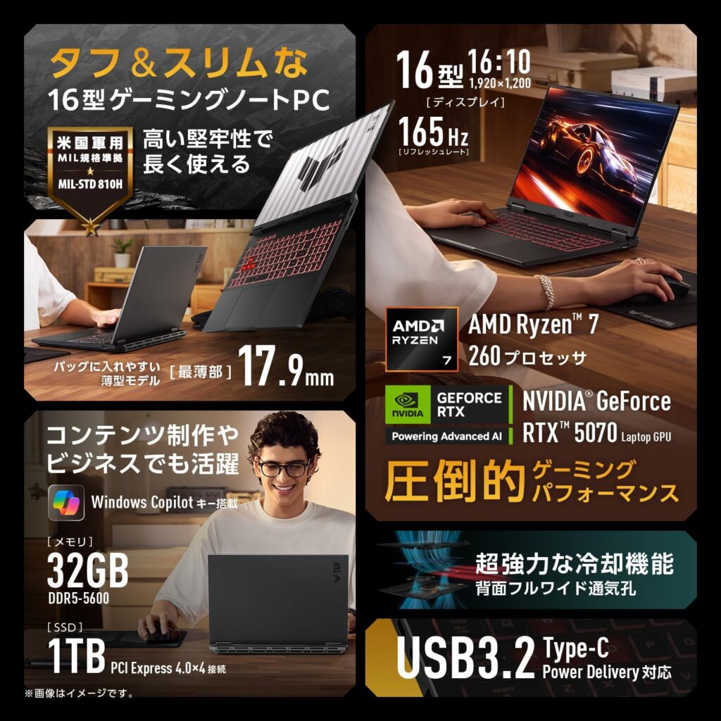 - “持ち運べる化け物性能”を手に入れろ。ASUS TUF Gaming A16 RTX5070モデル